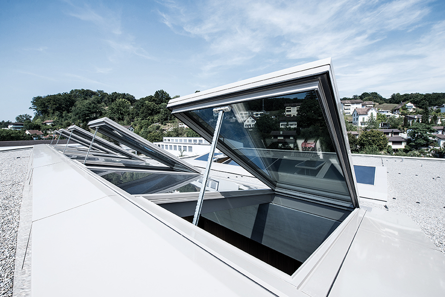 Des systèmes de clapets à commande électrique pour l’aération et la ventilation améliorent non seulement la qualité de l’air ambiant, mais peuvent également réduire jusqu’à 30% les besoins énergétiques totaux pour la climatisation et le refroidissement. Le type, le nombre et l’agencement dépendent du volume de la pièce, du rayonnement solaire, de la circulation de l’air et de l’usage de la pièce.
